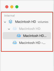 3. در پنجره جدید، یک سوم سمت چپ، تمام درایوهای موجود و حجمهای مرتبط با آنها را نشان میدهد.