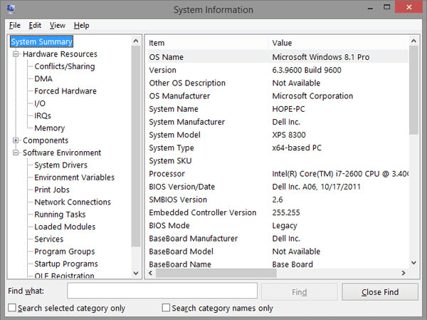 در ویندوز، برای مشاهده سختافزار نصب شده در ابزار System Information، برای اطلاعات اولیه در مورد پردازنده، حافظه و مادربرد، روی System Summary در منوی ناوبری سمت چپ کلیک کنید. برای اطلاعات دقیقتر، روی + کنار Hardware Resources and Components در منوی ناوبری سمت چپ کلیک کنید و برای مشاهده اطلاعات مربوط به سختافزار، روی یک نوع سختافزار کلیک کنید.